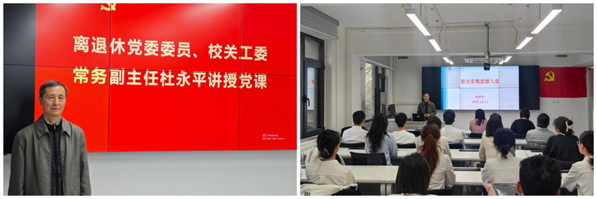 杜永平为新发展党员讲授专题党课,党课聚焦"思想入党"这一命题,引导全体新发展党员:坚定理想信念,做到"两个维护";深化理论武装,持续学习党的创新理论;践行党的宗旨,站稳人民立场;强化党性修养,严守纪律规矩;明辨是非,坚定政治立场;担当时代使命,发挥先锋模范作用。