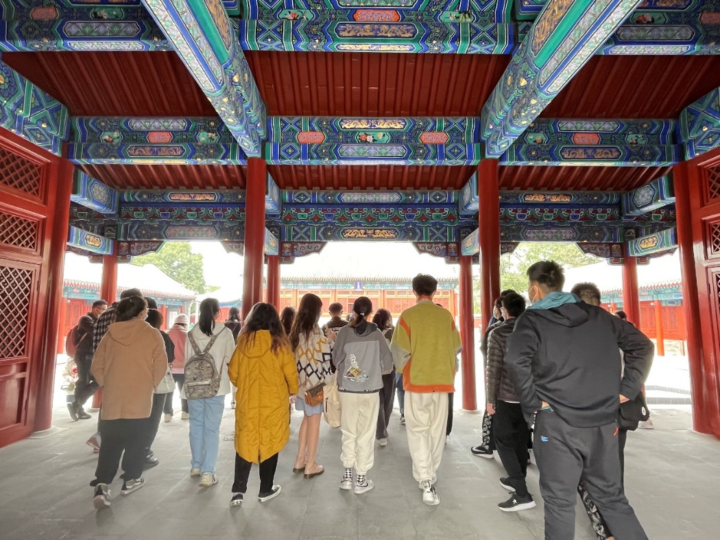 师生们首先来到通州三教庙-燃灯佛舍利塔(又称通州燃灯塔),通过景区讲解员的讲解,师生们了解了燃灯塔悠久曲折的人文历史,加深了对塔、寺这类古建筑材料和结构技术及古建筑装饰构件方面的认识。
