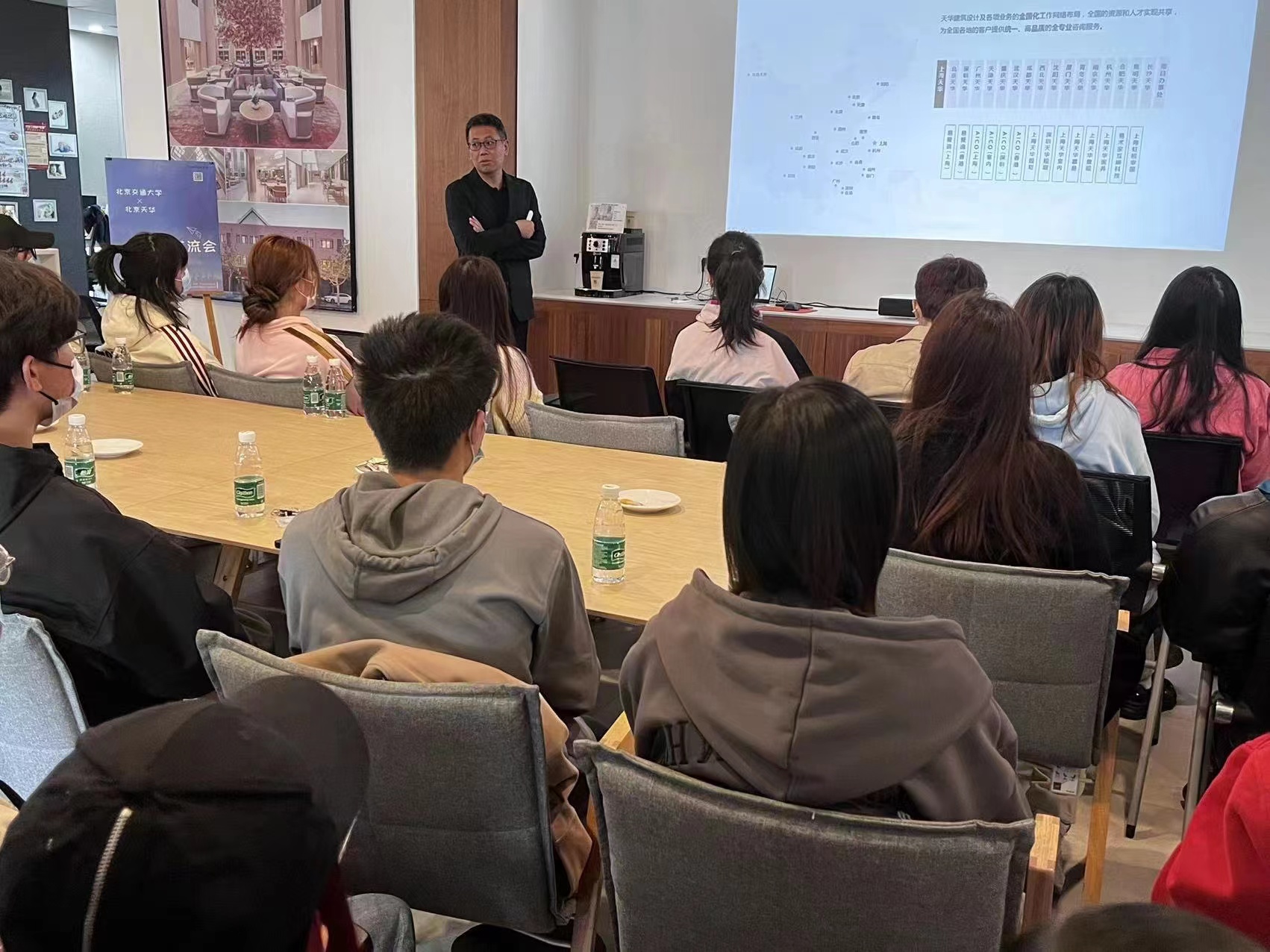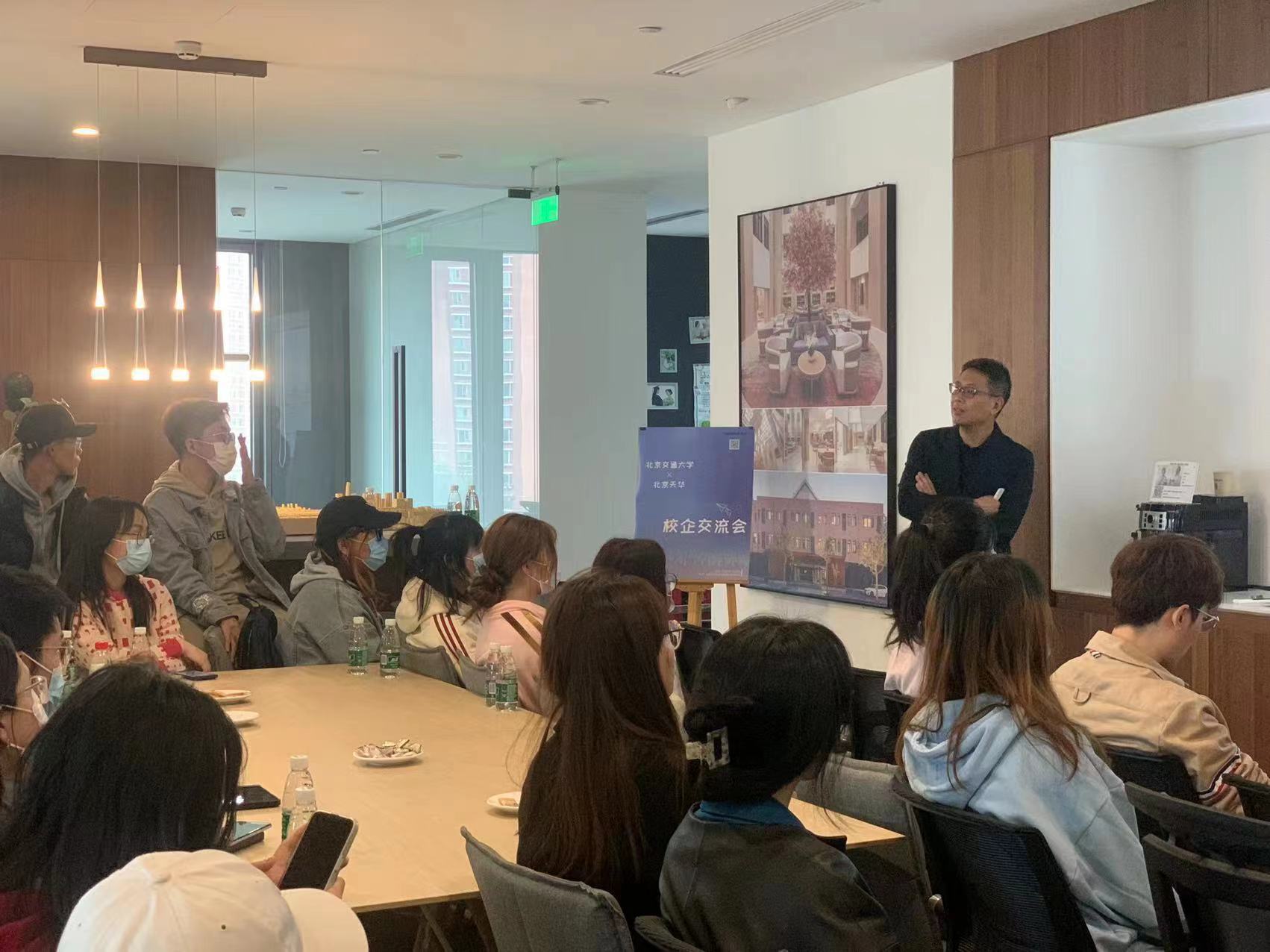 为了让在校生增强专业认知,了解企业人才需求,10月20日下午,建艺公司李旭佳、魏泽崧、郭海三位老师带领部分本科生、研究生赴天华建筑北京公司参加企业开放日活动。北京天华总经理闫锋,副总建筑师、医养一所所长蔡俊,人力资源部经理董静出席了本次活动。