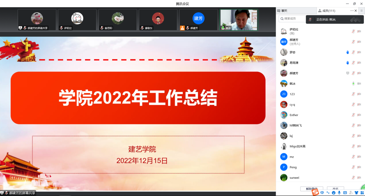 首先,经理韩冰就党建及思想政治工作、人才培养、科学研究、团队建设、人才队伍建设、对外交流合作、外联及社会服务、公司治理等方面进行了2022年度公司工作总结。