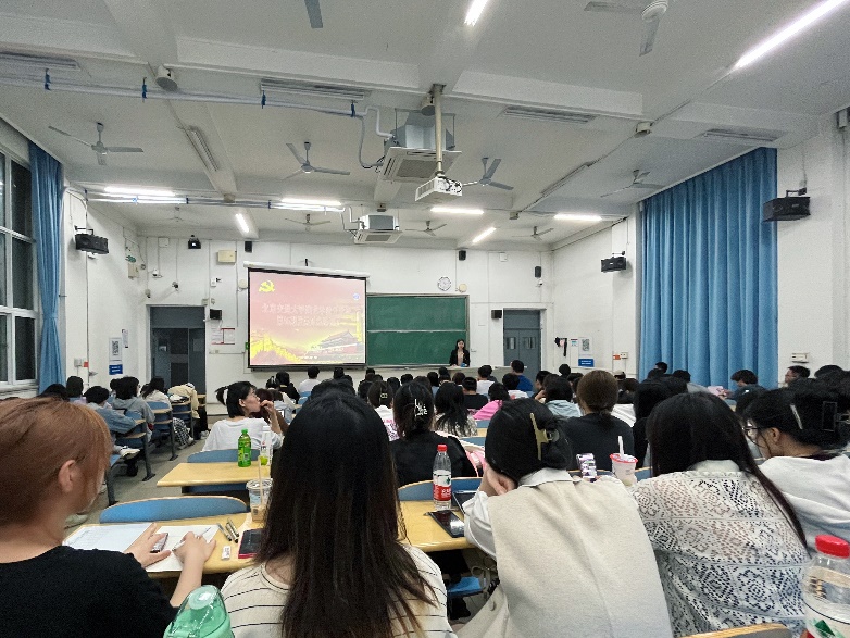 21级本科生张敏同学代表全体学员发言。她表示,新时代老员工应该珍惜党课学习的机会,不仅仅是学习党的光辉历史,更要汲取她背后所蕴藏的智慧和精神。她代表全体学员郑重承诺,在党课学习的过程中要端正学习态度,严格要求自己,争取早日成为一名合格的党员。