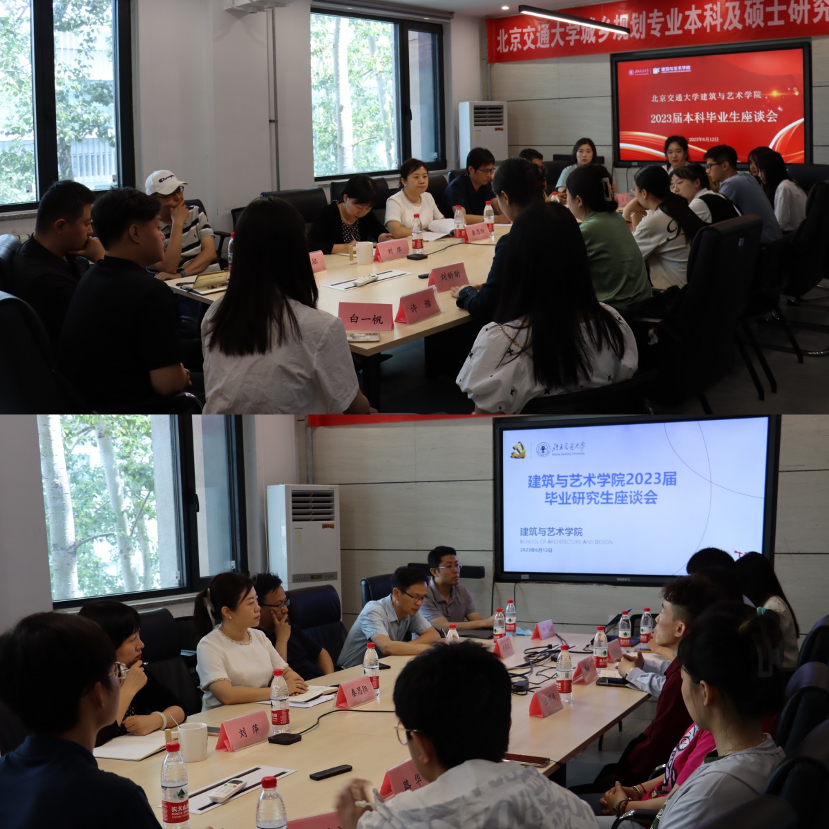 2023年6月12日上午,建艺公司在公司三层会议室分两场举行2023届本研毕业生座谈会。公司党委书记秦思阳、经理韩冰、党委副书记刘萍、副经理佘高红、副经理张野、建筑系主任盛强、规划系主任王鑫、设计系主任王征、学工办主任张京、毕业生辅导员张帅、董博宇以及本研毕业生代表参加分别参加两场座谈会。