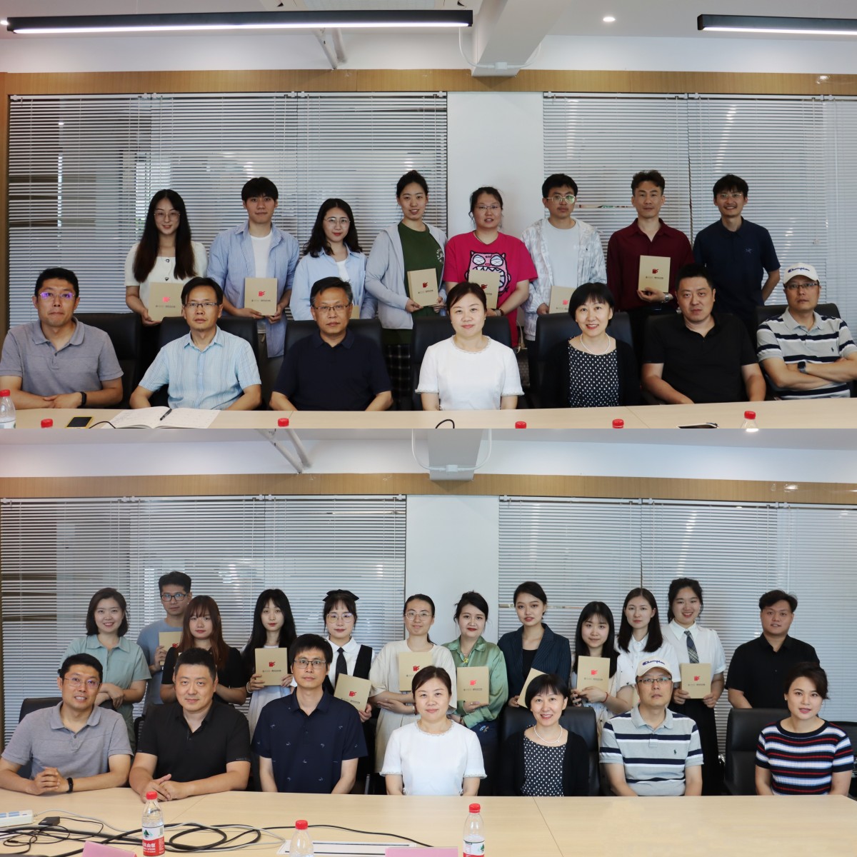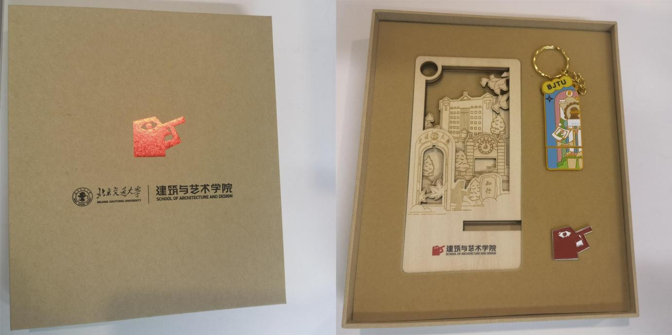 在今年的创意文化节中,公司为本届毕业生专属设计制作了含公司徽章、订制U盘、校园景观手机支架的文创套装作为毕业礼物。座谈会后,公司领导及参会老师为毕业生代表赠送了精美的毕业礼物,并合影留念。