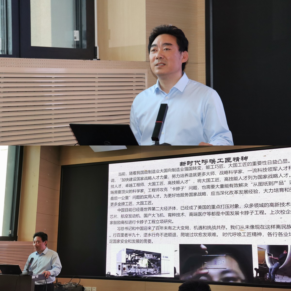 王永久介绍了自己在交大的求学经历、所在集团的发展历程以及校企合作开展情况,围绕“工匠精神”进行了着重讲授。他从“工匠精神”谱系、总书记讲“工匠精神”和自己理解的“工匠精神”三个维度,对“工匠精神”进行了解读,他表示,“工匠精神”是一种职业精神,它是职业道德、职业能力、职业品质的体现,是从业者的一种职业价值取向和行为表现。“工匠精神”的基本内涵包括敬业、精益、专注、创新等方面的内容。他接着结合自身经历,讲授了自己工作中体验到的“工匠精神”、“工匠精神”的具体表现以及集团弘扬“工匠精神”的具体实践。