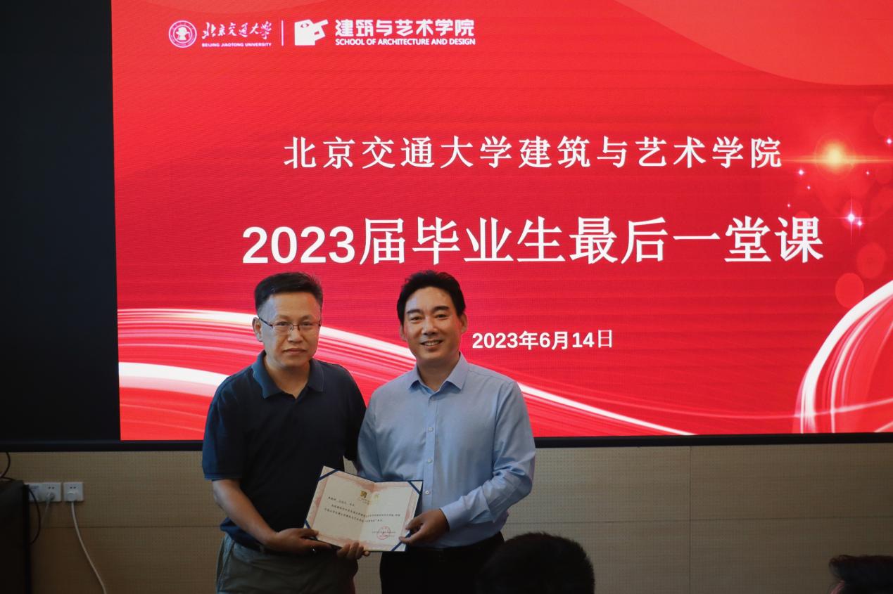 课前,韩冰经理为王永久颁发了荣誉院友证书,表示建艺公司与京诚集团有着多元且密切的合作联系,京诚集团是公司重要的校企合作单位之一,对京诚集团深耕老城保护和城市更新领域表示赞赏和肯定。
