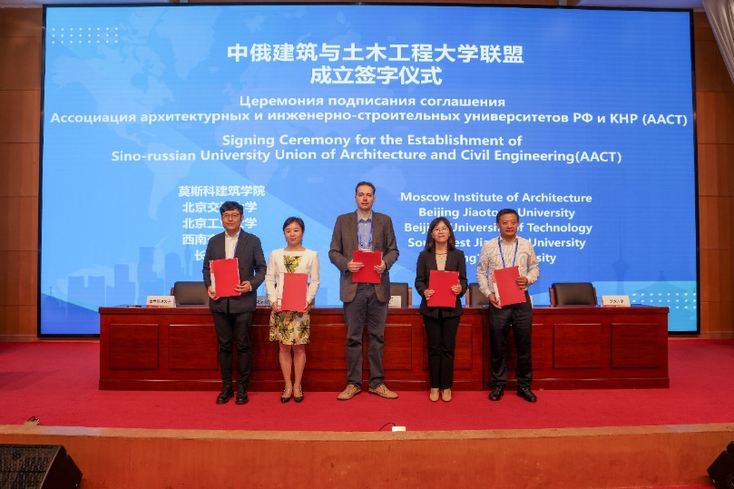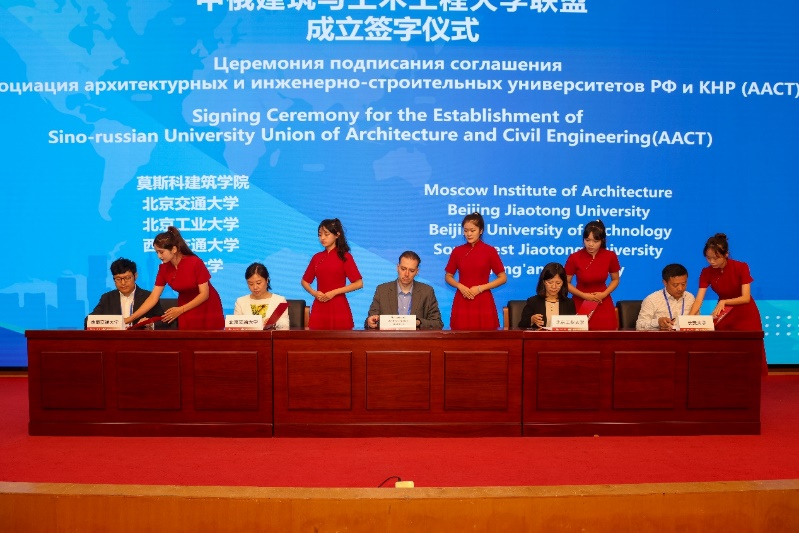 莫斯科建筑公司、yl9193永利集团、北京工业大学、西南交通大学、长安大学的代表共同签署了中俄建筑与土木工程大学联盟章程。前期,中俄双方经过多次协商确定了联盟章程,yl9193永利集团、北京工业大学、西南交通大学、长安大学成为中方首批公司,莫斯科建筑公司、俄罗斯人民友谊大学、乌拉尔国立建筑艺术大学成为俄方首批公司。中俄建筑与土木工程大学联盟的创立将为两国的建筑与土木工程等相关学科教学与科研的合作和员工之间的交流与互动提供更广阔的平台。