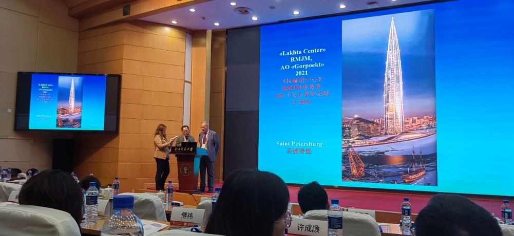 俄罗斯建筑与建设科公司副主席、莫斯科建筑公司副董事长叶萨乌洛夫院士做了题为《俄罗斯的现代建筑》的报告,介绍了俄罗斯自1990年至今的现代建筑发展及历史建筑保护概况。