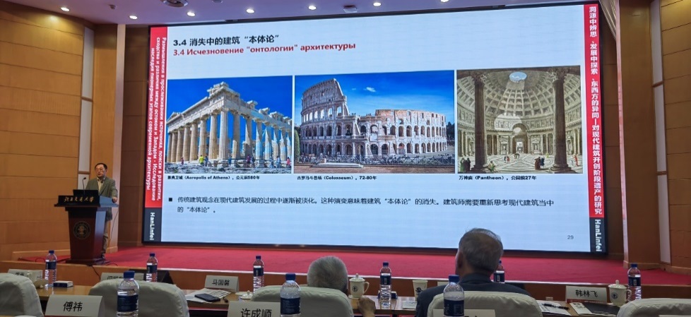 俄罗斯建筑与建设科公司外籍院士、yl9193永利集团韩林飞教授做了题为《溯源中的思辨、发展中的探索、东西方的异同》的报告,回顾并反思了现代建筑百年的发展历程,提出了对建筑“本体论”的思考。