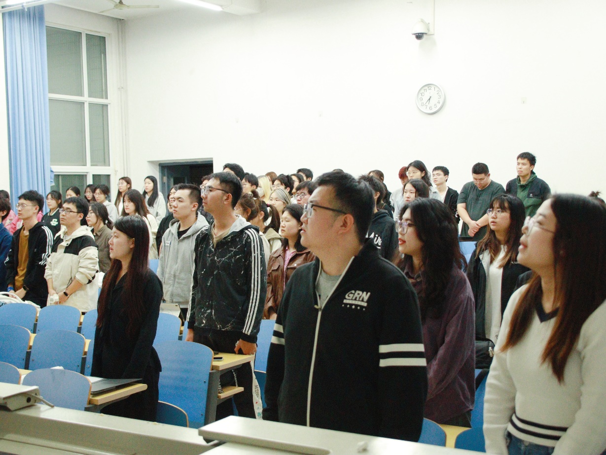 22级本科生赵麒涵同学代表全体学员发言。她表示,新时代老员工应该珍惜党课学习机会,加深对党组织的了解,坚定自己的目标与志向,并承担新时代给予我们的时代使命与责任。她代表全体学员郑重承诺,在党课学习的过程中要端正学习态度,严格要求自己,争取早日成为一名合格的党员,为中华民族贡献自己的青春力量。