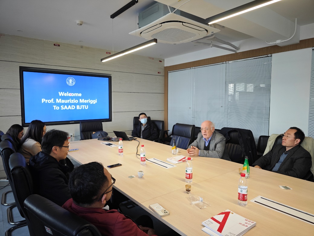 副经理佘高红代表公司向MAURIZIO MERIGGI教授此次访问交流表示欢迎,希望可以与米兰理工大学建筑、城市规划和建造公司建立长期的教学、科研交流合作。系主任王鑫介绍了公司的发展历程、专业方向以及教学科研情况等。MAURIZIO MERIGGI教授感谢公司和韩林飞教授的盛情邀请,他曾多次到访公司,对于公司近几年的发展以及教学空间更新改造成果表示肯定,也分享了米兰理工大学建筑、城市规划和建造公司的近些年相关办学情况及个人在绿色城市、建筑遗产相关方面的研究情况,期待未来两校合作交流活动能够得到更近一步的推进和发展。