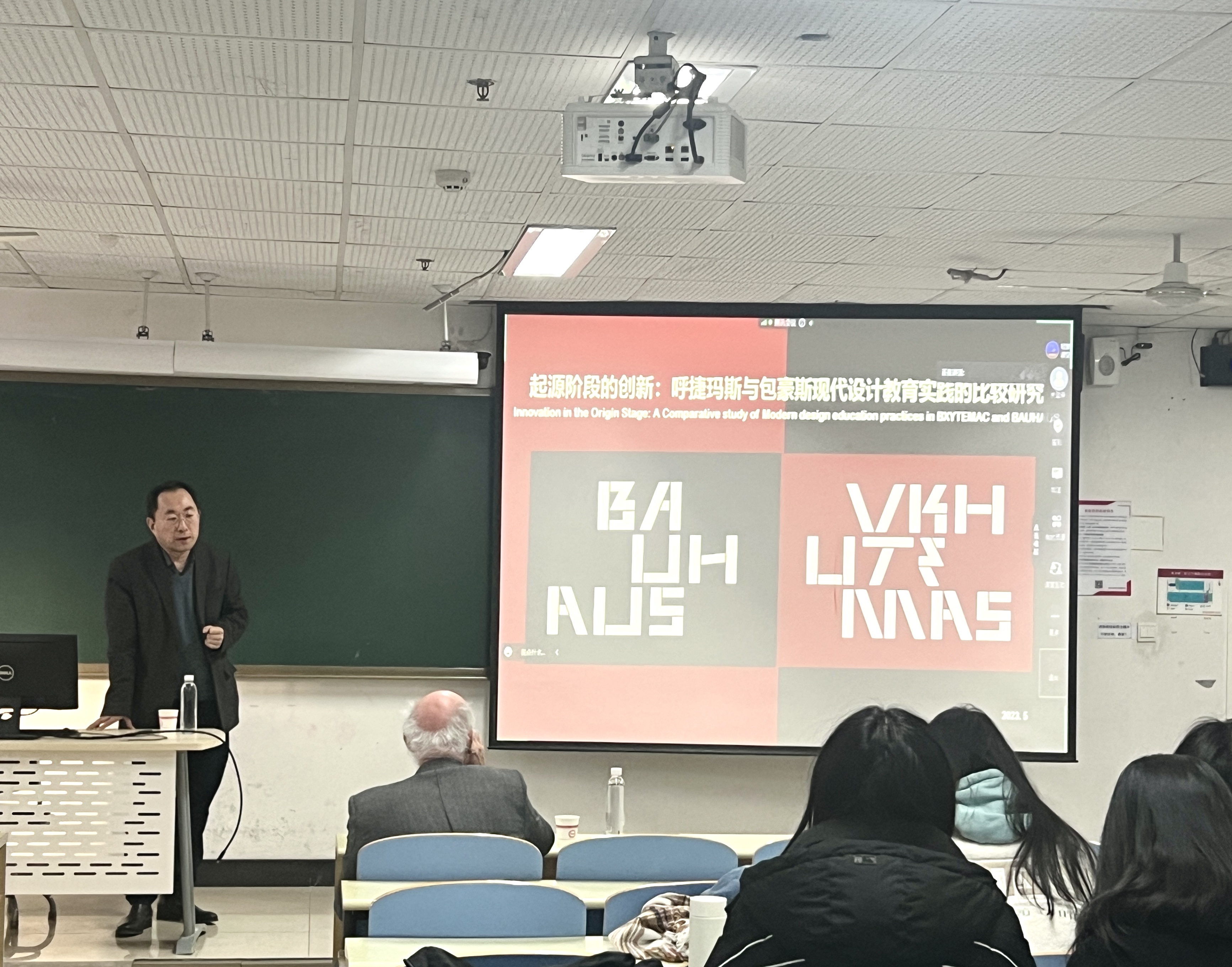 《呼捷玛斯与包豪斯》讲座中,MERIGGI教授介绍了包豪斯和呼捷玛斯两个现代建筑及艺术教育起源地的发展历程与设计变革。主要阐述包豪斯教学及理念,以及在意大利地区的发展与影响,结合设计作品向同学们展现了现代主义建筑启蒙阶段的形态,以及在意大利地区的探索。同时,韩林飞教授侧重介绍了百年呼捷玛斯的发展历程与教学思想,并结合两所公司的课程体系、员工作品等阐述在特定的时代背景下,现代建筑及艺术如何在公司教育中启蒙与发展。MERIGGI教授与韩林飞教授共同为同学们带来一场学术盛宴。讲座结束后,同学们积极提问,MERIGGI教授与同学们进行互动交流,并探讨员工提出的问题。