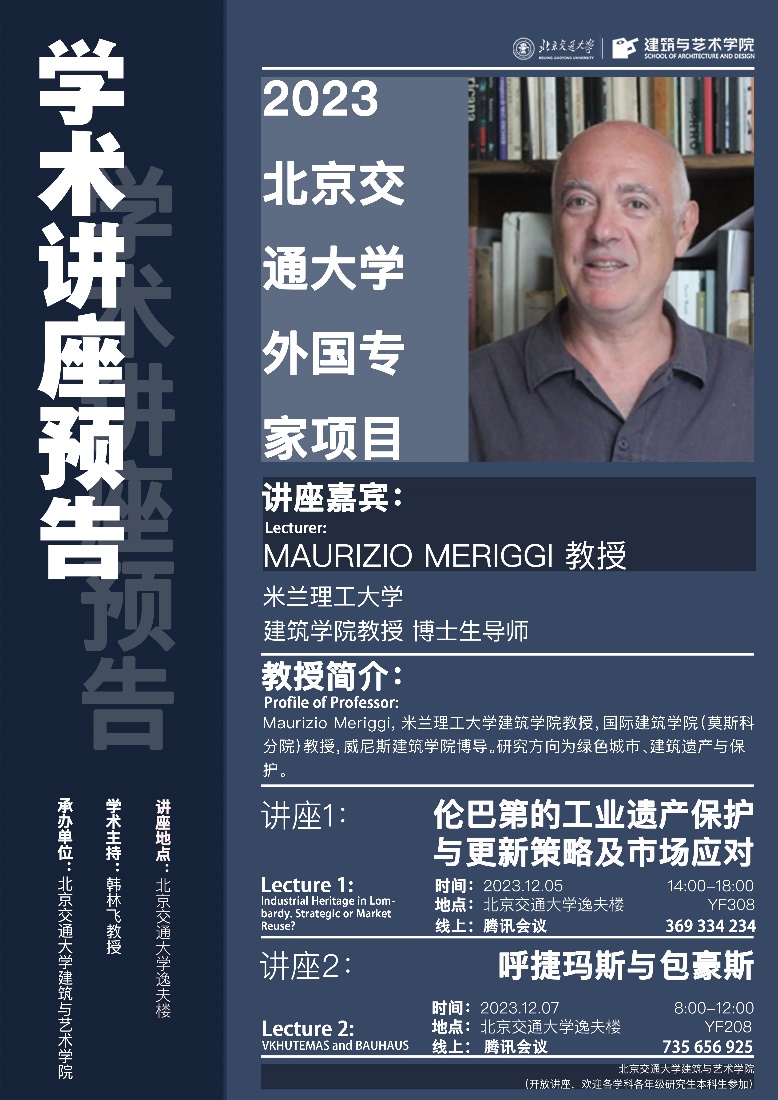 MAURIZIO MERIGGI教授分别于12月5日和7日以《伦巴第的工业遗产保护与更新策略及市场应对》、《呼捷玛斯与包豪斯》为题开展系列讲座活动,并和参会师生进行交流与互动。