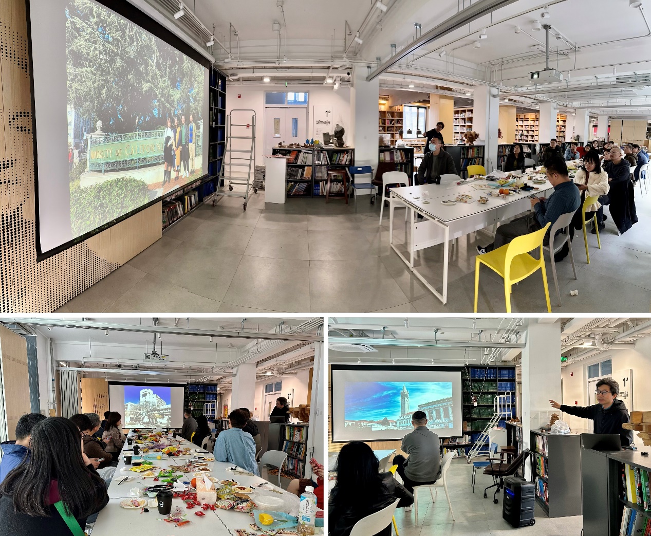 其乐融融的生日会后,公司青年教师联谊会组织“青芯”学术沙龙第6期,建筑系曾忠忠老师分享了在加州大学伯克利分校和辛辛那提大学的两段访问经历。他重点比较分析了伯克利的教学体系和辛辛那提未来实验室,为青年教师的学术生涯提供建议和思考。