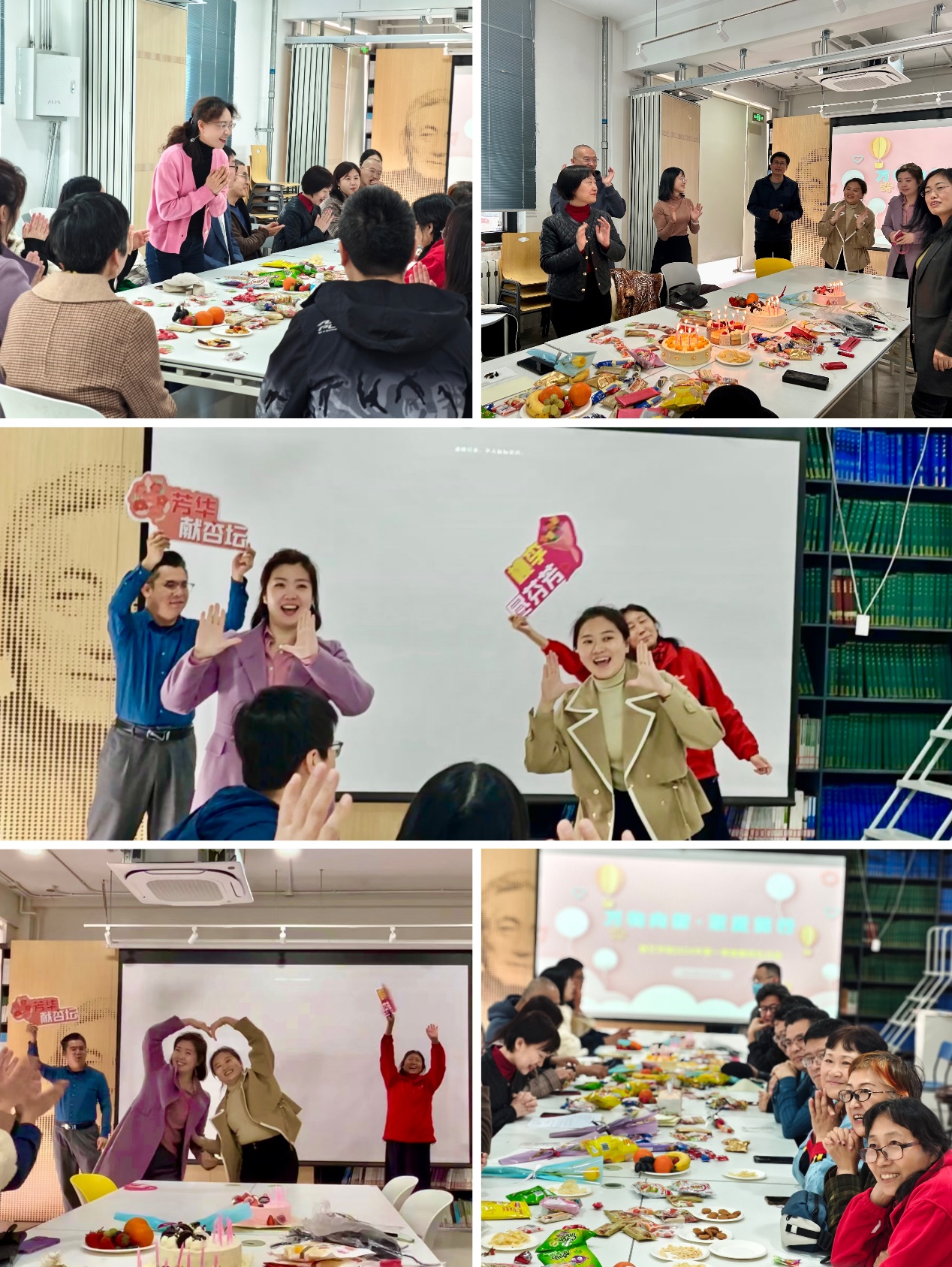 万物向新,聚爱前行。3月28日中午,建艺公司在公司一层资料室举办2024年第一季度教职工集体生日会。公司党委书记秦思阳,副书记刘萍,副经理张野,第一季度过生日的16位老师们共同参加本次活动。活动由刘萍主持。