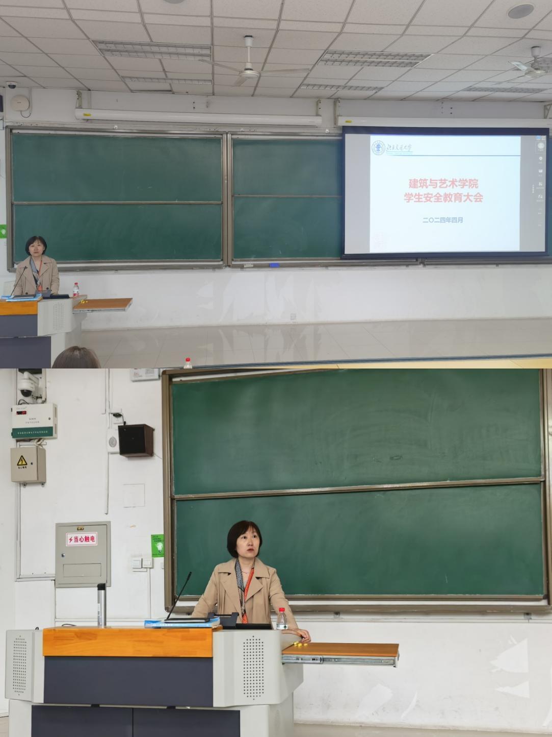 2024年4月23日,建艺公司联合保卫处在思源108举办安全教育大会。保卫处副处长吴斌、建艺公司党委副书记刘萍、全体辅导员出席会议,公司各班班长、生活委员和全体宿舍长参加。会议由建艺公司学工办主任张京主持。