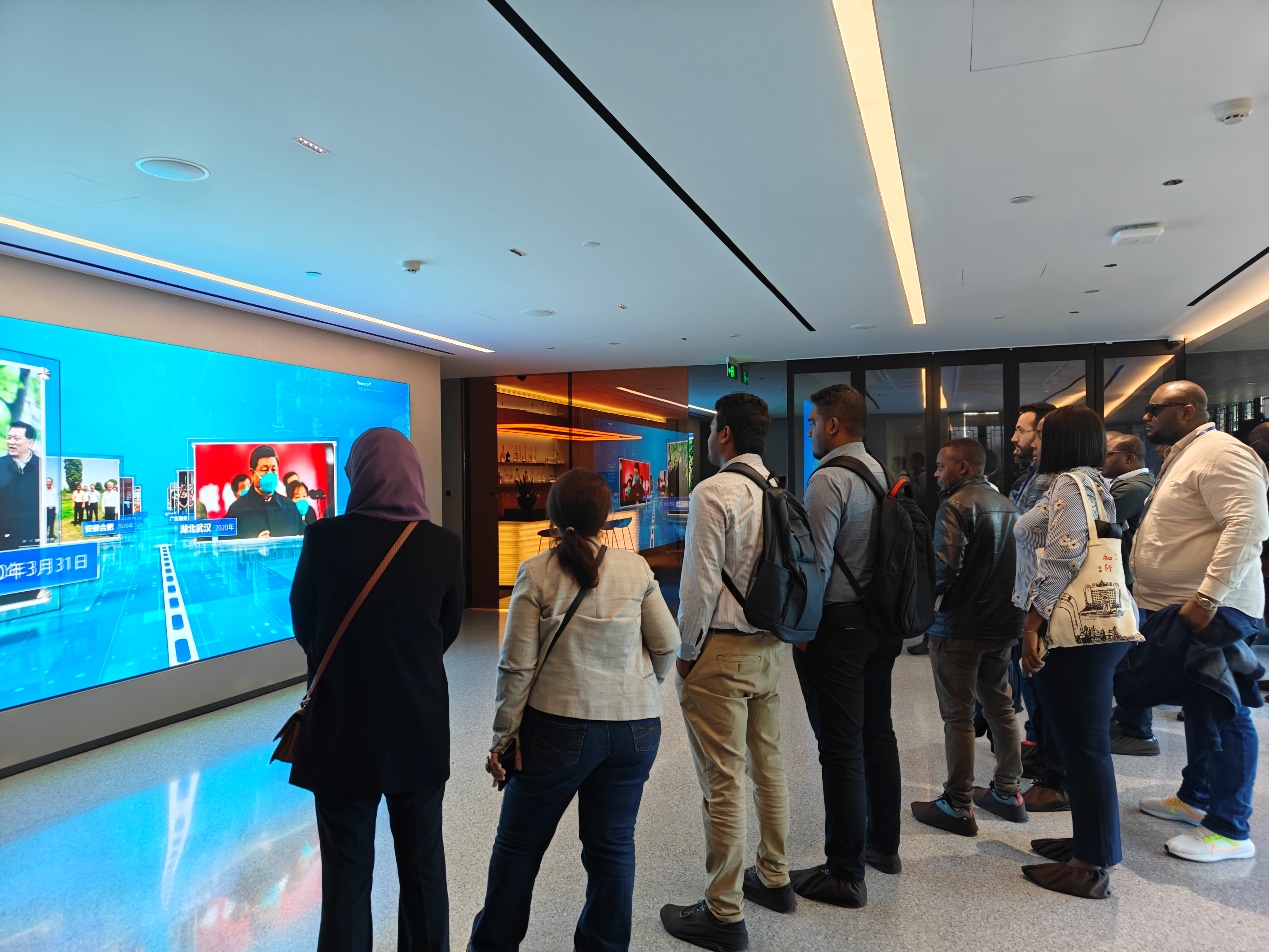 研修啊官员和公司研究生参观华为智慧城市展厅