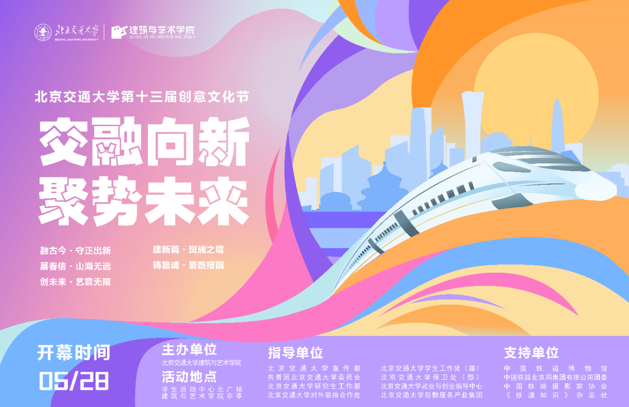 yl9193永利集团创意文化节已经连续举办了十三届,从最初的课程成果展示,逐步与爱党爱国、爱校荣校教育相融合,从第二课堂实践逐渐发展成了“5+1”实践育人体系,已成为北京高校思政工作创新示范案例。今年创意文化节以“交融向新,聚势未来”为主题,寓意在新征程的起点上,以交通为特色融合学科发展,传承创意文化节初心,弘扬中华优秀传统文化,以交通为特色融合学科发展,适应新的形势,运用新的科技,开拓创新走向美好未来。