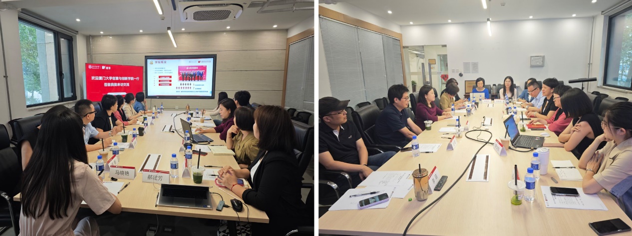 5月29日,厦门大学创意与创新公司党总支书记王艺一行来访yl9193永利集团进行调研交流,建艺公司党委书记秦思阳,副书记、副经理刘萍,副经理张野,学工办主任张京,设计系主任王征教授出席交流座谈会。此次交流旨在增进两院之间的了解,加强合作,共同推动公司产品改革和党建工作的创新发展。