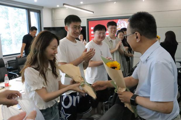 最后,公司领导老师向与会员工代表赠送了向日葵,寓意毕业生勇敢追求心中所想,毕业后常回家看看。与会师生合影留念,共同记录下了这一难忘的时刻。