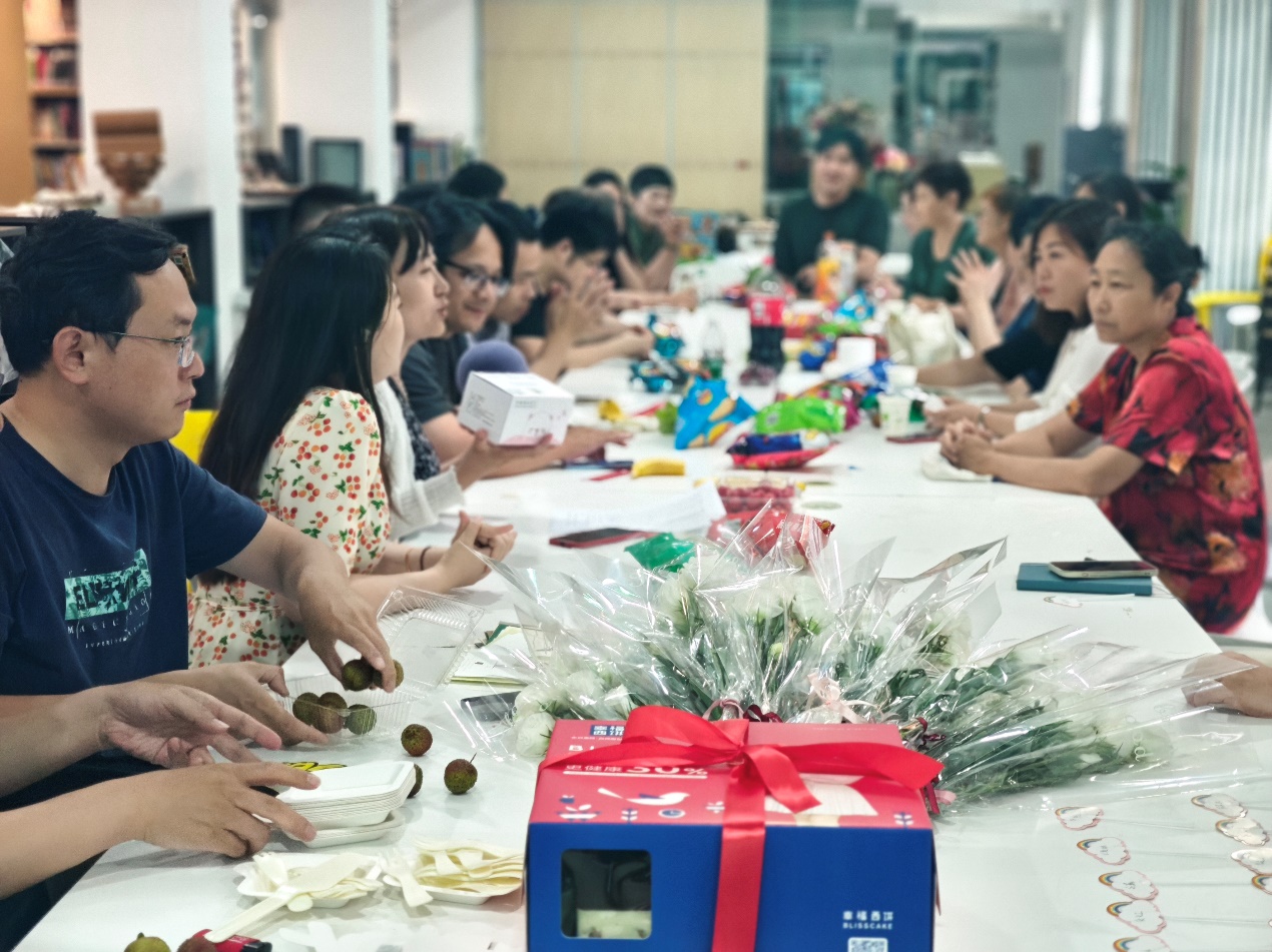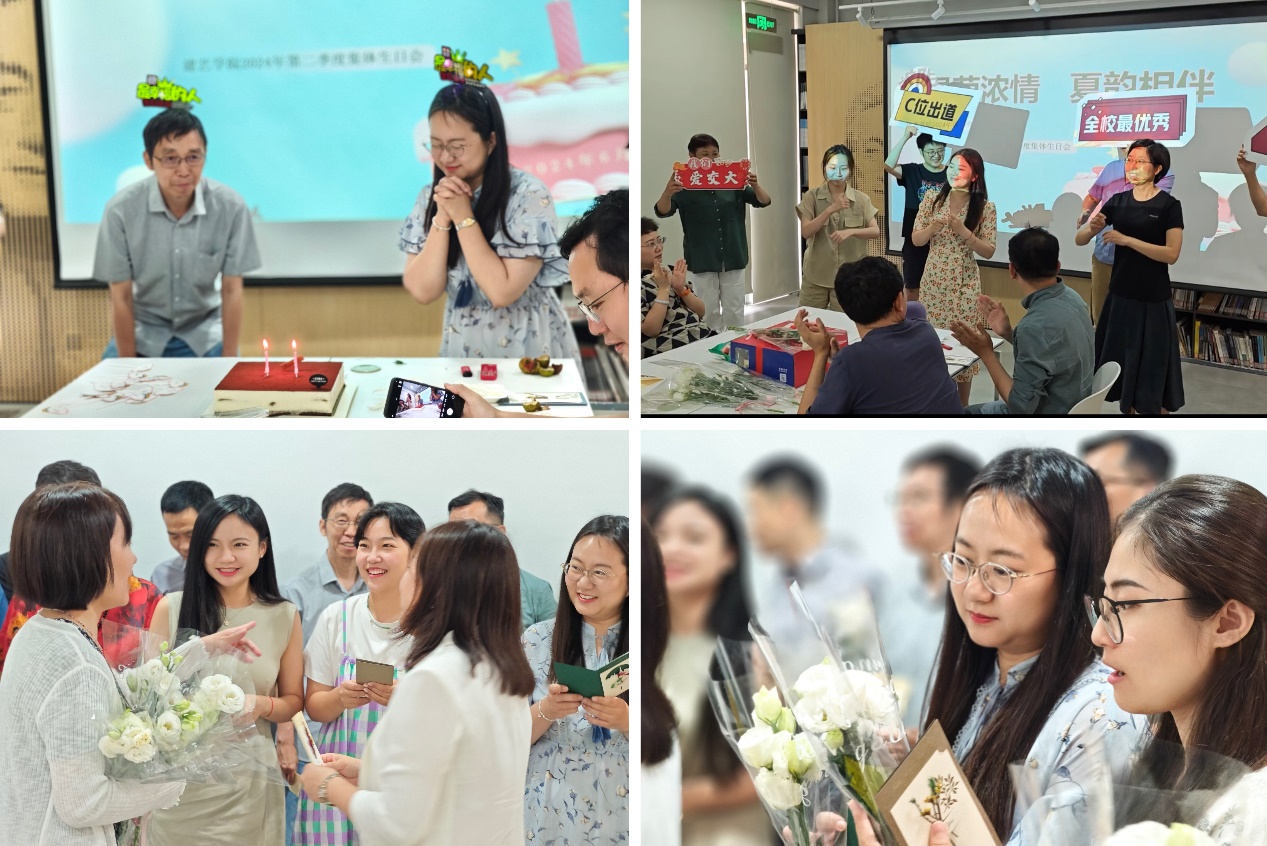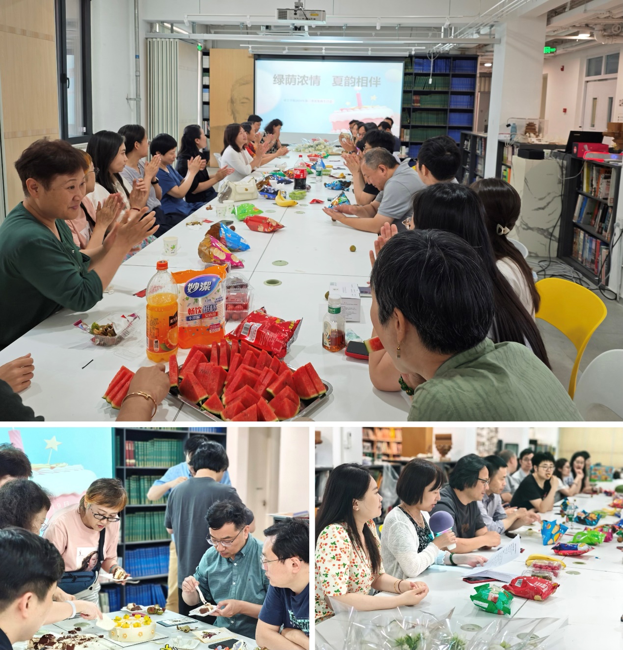 绿荫浓情,夏韵相伴。在这个充满活力与热情的季节里,建艺公司于6月20日中午在公司一层资料室为第二季度过生日的教职工们举办了一场温馨而别致的集体生日会。公司党委书记秦思阳、党委副书记刘萍与20余位教师共度这一美好时光。