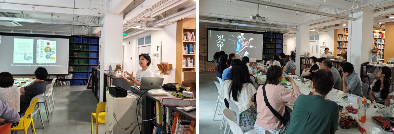 生日会后,公司青年教师联谊会组织“青芯”第7期青年教师学术沙龙,设计系的姚远老师为大家带来了一场别开生面的机器人艺术之旅。姚老师从自己制作机器人乐队的有趣经历出发,从神秘东方的《水饰图经》讲起,再到西方教堂上《永不停歇的时钟》,最后回归到中国的首支国风机器人乐队。她的分享不仅展示了科技与艺术的完美结合,也传递了对传统文化的传承与创新精神。