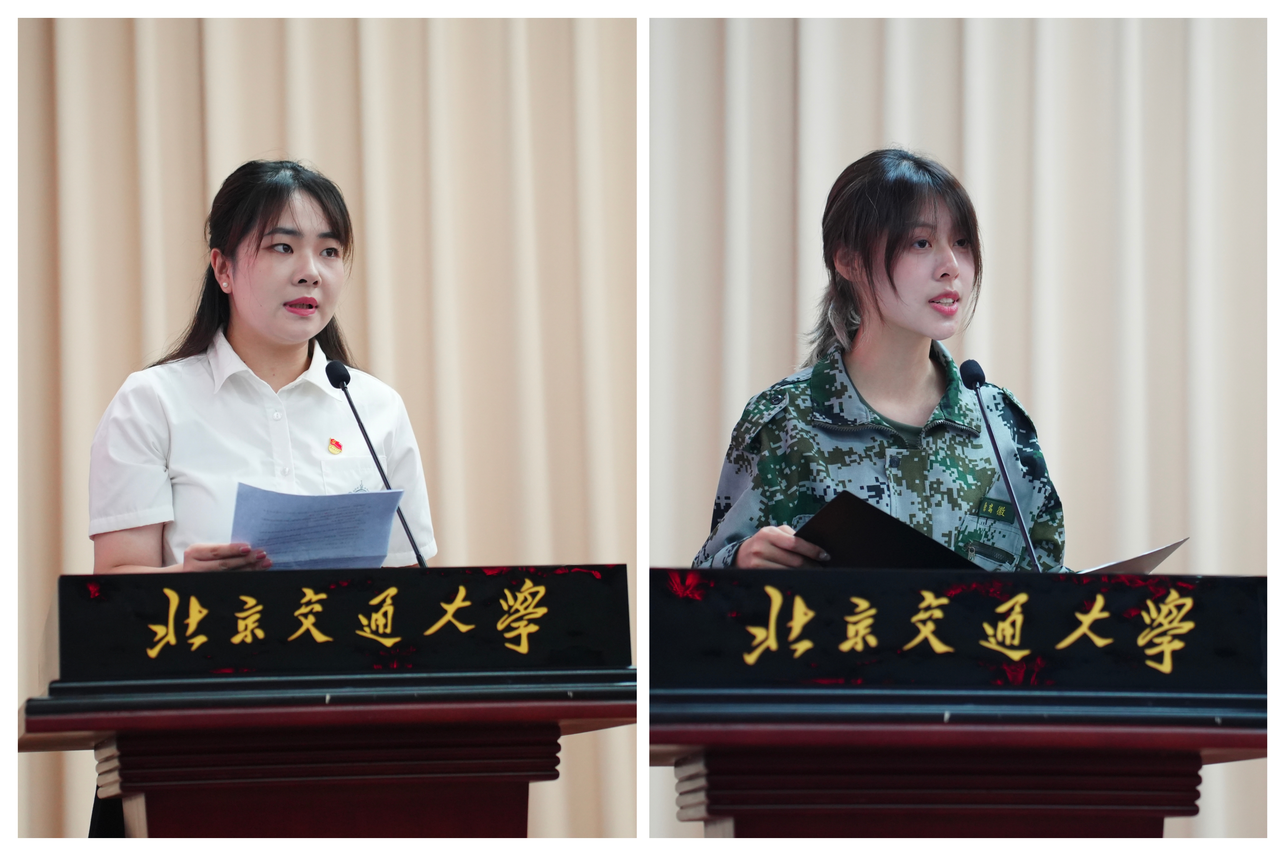 在校生代表城乡规划硕士研究生胡蝶,本科新生代表设计学专业徐瑞徽分别发言。胡蝶分享了她参与设计竞赛的实践经历与成长心得,阐释了建艺瞭望者”立高处、望远方、行大道“的精神内涵,鼓励学弟学妹们要设定目标、深化专业知识、培养创新思维,拓展跨学科视野,不断提升自我;徐瑞徽分享了初入交大的新奇感和美好体验,希望同学们在融入建艺大家庭的过程中,修炼“四心”:敬畏心、感恩心、坚毅心和责任心。面对未来的挑战,要坚定信念,努力成才,为社会和国家贡献力量。