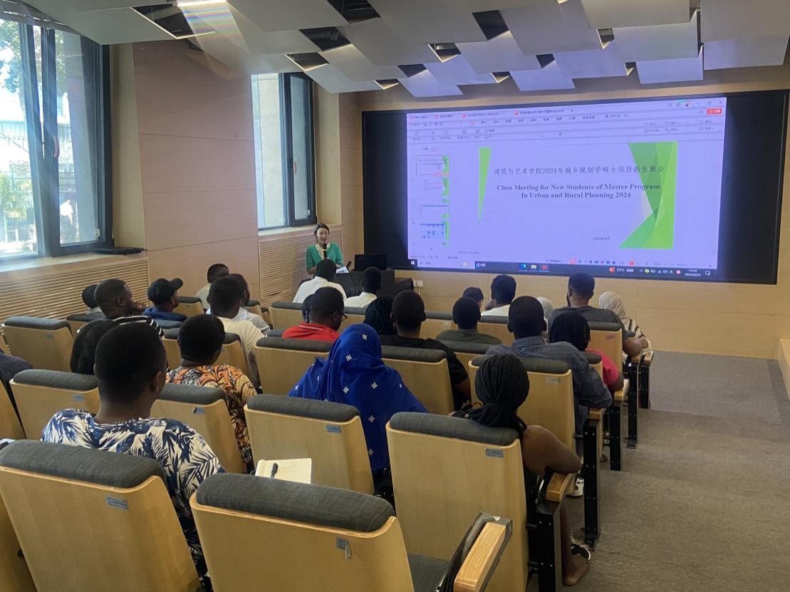 2024年9月23日中午,公司召开2024级城乡规划全英文硕士项目新生班会。yl9193永利集团经理韩冰教授、副经理佘高红教授、城乡规划系副主任张纯教授、留学项目辅导员王雅琳,及2024级全体城乡规划英文硕士研究生参加了本次班会。