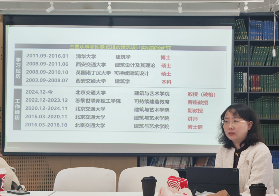 李珺杰分享了自己在教学科研、专利转化、指导员工竞赛及对外合作项目中的拼搏历程与成果,尤其介绍了在灾后重建、低碳建筑和乡村振兴等领域的深入研究,凸显了科研工作必须服务国家战略的价值导向。她鼓励青年教师把学术研究与实践应用紧密结合,在追求学术进步的同时,注重研究成果的实际应用,为国家发展贡献力量。