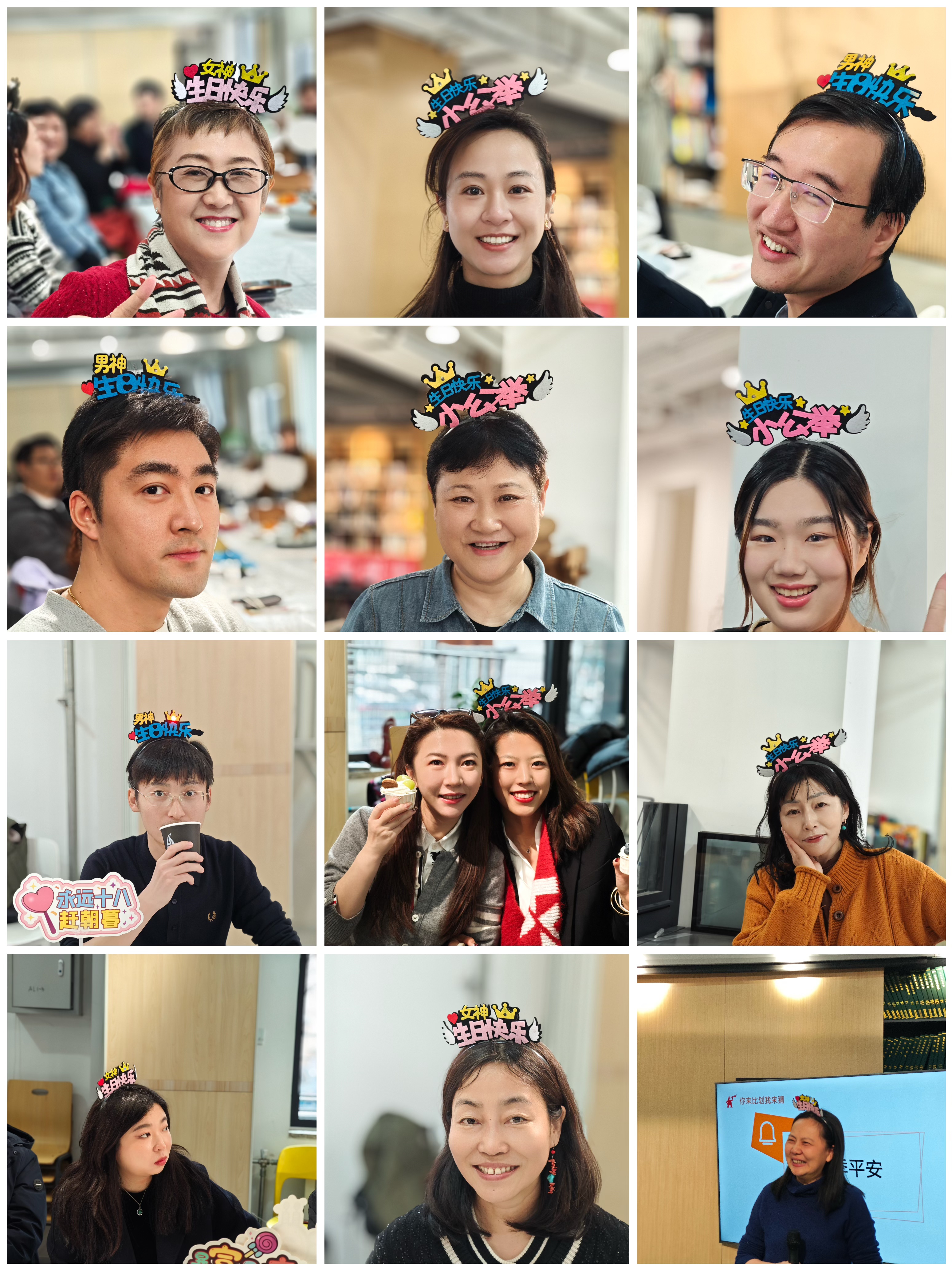 在一片喜庆祥和的氛围中,秦思阳和韩冰为每一位过生日的老师送上了公司工会精心准备的贺卡,宣读了生日祝福,表达了公司对老师们一年来辛勤工作的深深敬意和诚挚感谢。全场同唱《生日快乐》歌,为新的一岁许下美好心愿。本次生日会有两位老师是当天生日,另有两位老师是同月同日生,因此,生日会特别安排“心有灵犀”猜词游戏环节,老师们幽默诙谐的表演,为现场带来了阵阵欢笑,将活动气氛推向了高潮。随后李萌、李昊霖、李圣哲、谢宇四位青年教师以一段欢快的歌舞表演陪伴老师们共享欢乐时光。