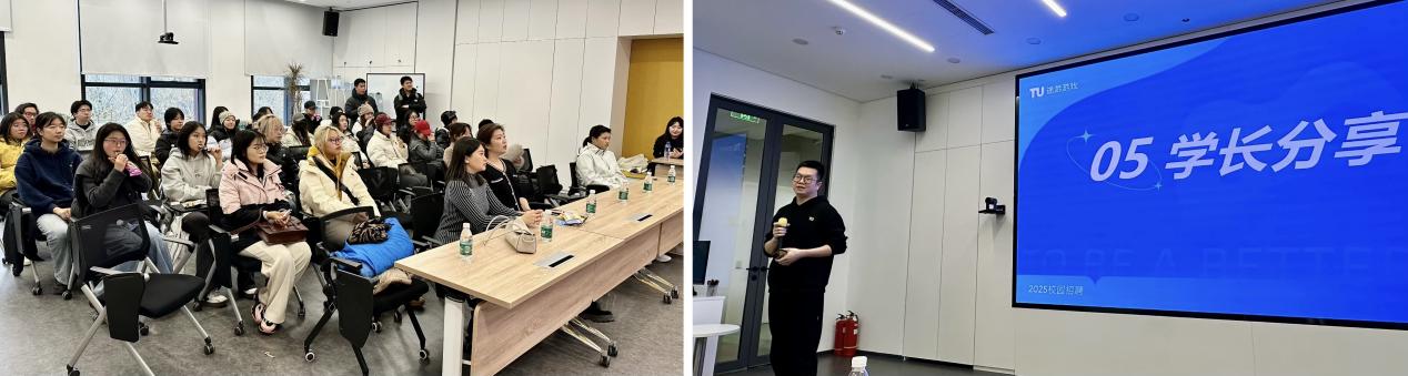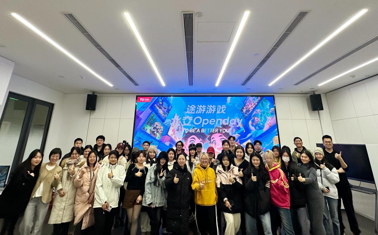参观结束后,途游公司美术专家、建艺公司2011级艺术专业员工臧学长分享了自己职场成长经历,以及入职途游近三年的工作体会。他建议同学们积极了解行业动态,建立职业认同感,主动学习前沿技术,保持开放谦虚的态度,并通过实习实践不断调试和明确自己的就业目标。学长的分享,为同学们的专业学习和职业发展注入了满满的正能量。